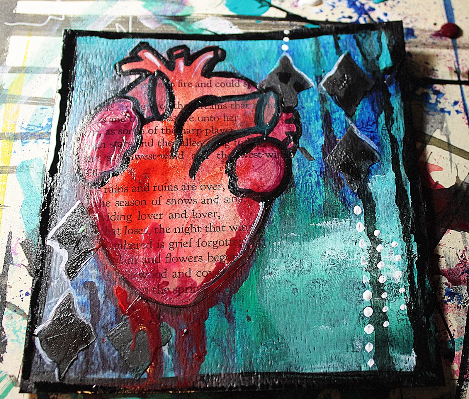 That's it! I think it was fun to explore color and balance the brights with the darks. It's always a good time to bring out the modeling and crackle pastes and work intuitively as well.